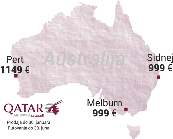 Melburn i Sidnej tokom promocije koštaju 999 evra, dok za Pert do 30. januara možete kupiti kartu po ceni od 1.149 evra.