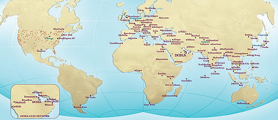 Beograd je od 20. novembra 2012. 121 destinacija Qatar Airways-a. Ova kompanija održava i kargo linije do 35 destinacija. Qatar Airways sleće u 67 zemalja i jedna je od samo nekoliko aviokompanija na svetu koje lete do svih kontinenata (Afrika, Azija, Evropa, Severna i Južna Amerika i Okeanija.
