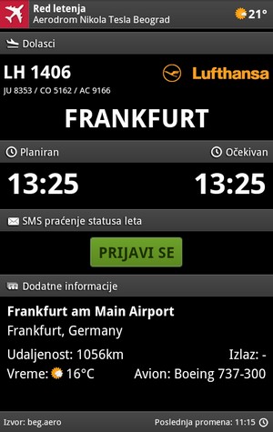 Korisnicima mobilnih telefona sa android platformom na raspolaganju je nova aplikacija sa aktuelnim redom letenja na beogradskom aerodromu.