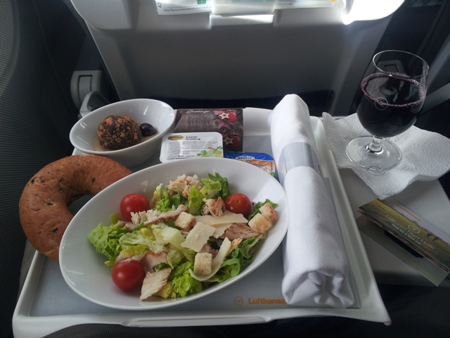 Pred poletanje nema posluženja pića dobrodošlice, niti ima vlažnih peškirića. Odmah po poletanju počinje i servis hrane i pića koji je besprekoran. Kabinsko osoblje je veoma ljubazno i uslužno. Na letu koji je bio u vreme ručka poslužena je dobra cezar salata, izvanredan trufle sa moka vanila kremom kao dezert i toplo pecivo na kakvo su svi koji su boravili u Nemačkoj navikli.