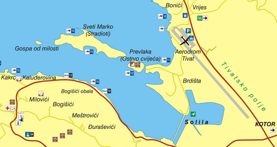 Ilustracija: Isečak mape Tivatskog zaliva, Turističke organizacije Tivta