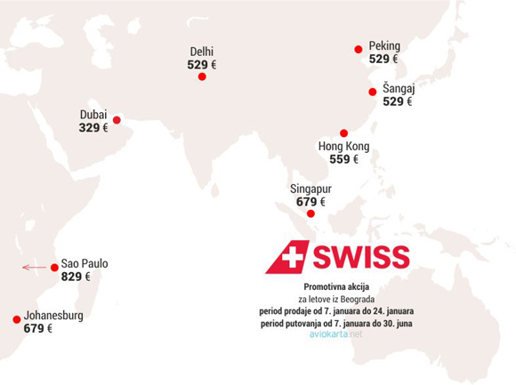 Promocija se odnosi na putovanja iz Beograda, preko Ciriha, ka osam Swissovih destinacija na tri kontinenta.