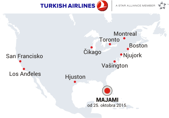 Turkish Airlines je najavio otvaranje nove redovne linije u interkontinentalnom saobraćaju između Istanbula i Majamija.