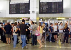 Putnici trenutno pre pasoške kontrole na izlasku iz zemlje treba da prođu detaljnu bezbednosnu kontrolu. U letnjoj sezoni i u vreme saobraćajnih špiceva na ovom mestu se često stvaraju velike gužve, pošto putnici treba da skinu kaiševe, izvade sve iz džepova, izvade laptop računar iz torbe, odvoje tečnost koja mora biti propisno spakovana, a često je potrebno i izuvanje. Odmah nakon te kontrole putnici staju u nove redove za izlaznu pasošku kontrolu, da bi tek nakon nje ušli u tranzitnu zonu. Međutim čak ni to nije sve, pošto ih nakon toga na ulasku u gejtove za ukrcavanje na let čeka nova kontrola ista kao i ona prva.