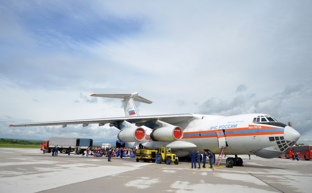 Humanitarna pomoć i spasioci su stizali i avionima. Rusija je u petak poslala prvi avion Iljušin Il-76 sa desetinom spasilaca i velikim količinama opreme neophodne za spasavanje. Kasnije za vikend su u Beograd i Niš sletela još dva aviona sa humanitarnom pomoći. Belorusija je takođen poslala Il-76 koji je nosio humanitarnu pomoć.