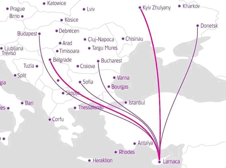 Osim do Beograda Wizz Air će iz Larnake leteti i do Kijeva (takođe nova linija) i Donjecka koji je ranije već najavljen. Linija prema Kijevu počeće od 1. maja, dva puta nedeljno, a prema Donjecku 30. marta 2014. godine.