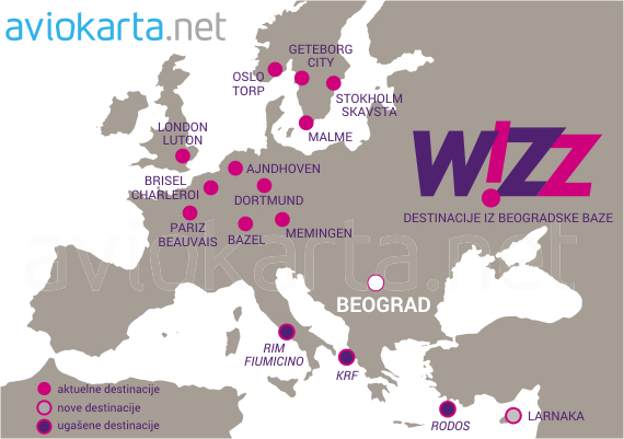 Od marta prošle godine Wizz Air na beogradskom aerodromu "Nikola Tesla" ima dva aviona Airbus A320. U prošloj godini mreža linija je proširena na 12 redovnih destinacija i dve sezonske. Krajem godine je najavljena nova linija do Larnake, koja će početi u martu.